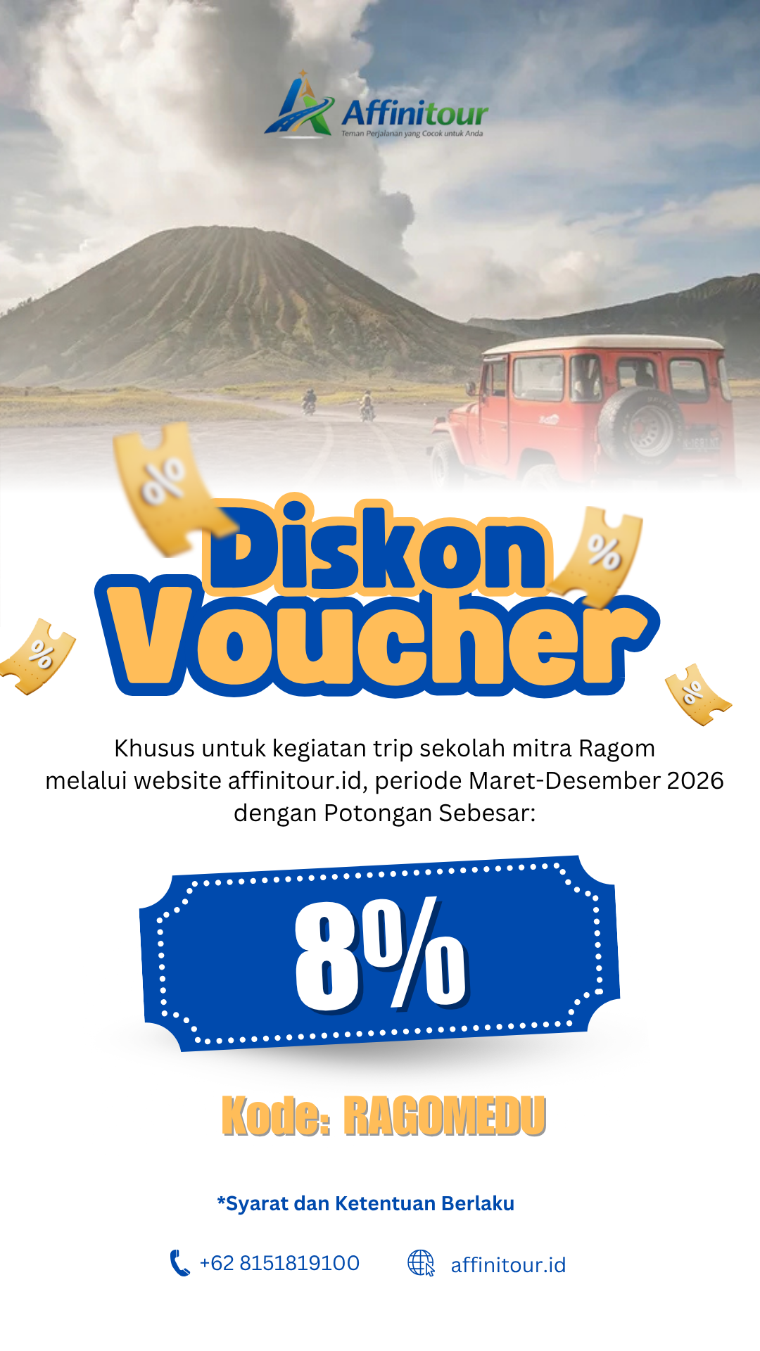 Untuk perjalanan pelajar, setiap rombongan akan didampingi minimal 1 pendamping dari Affinitour.id.
