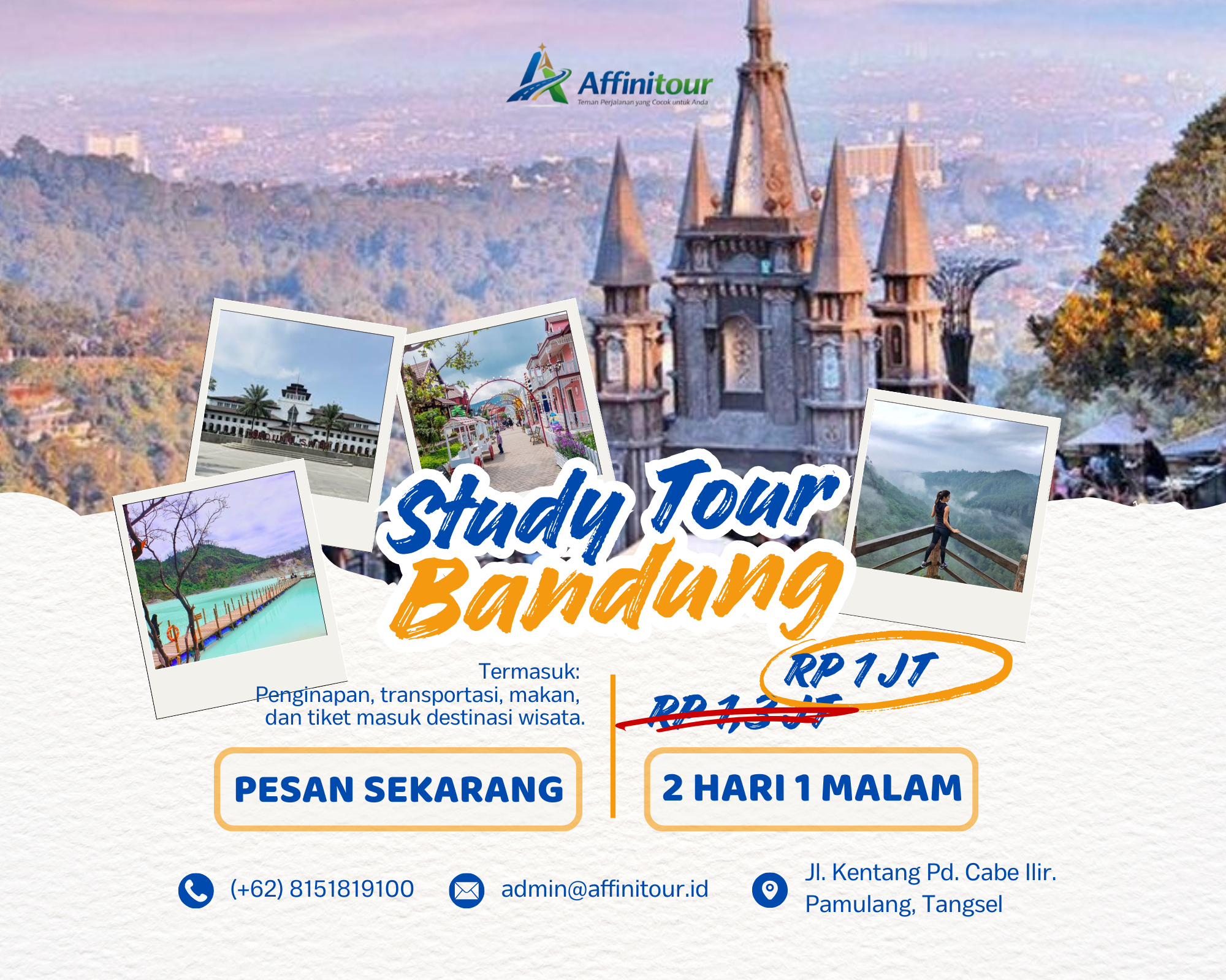 Bandung dikenal sebagai kota kreatif dengan perkembangan pendidikan, sains, dan teknologi yang sangat pesat. Program Study Tour ini dirancang bagi para pelajar untuk belajar langsung dari destinasi edukatif sekaligus menikmati keindahan alam serta budaya Sunda yang kaya.